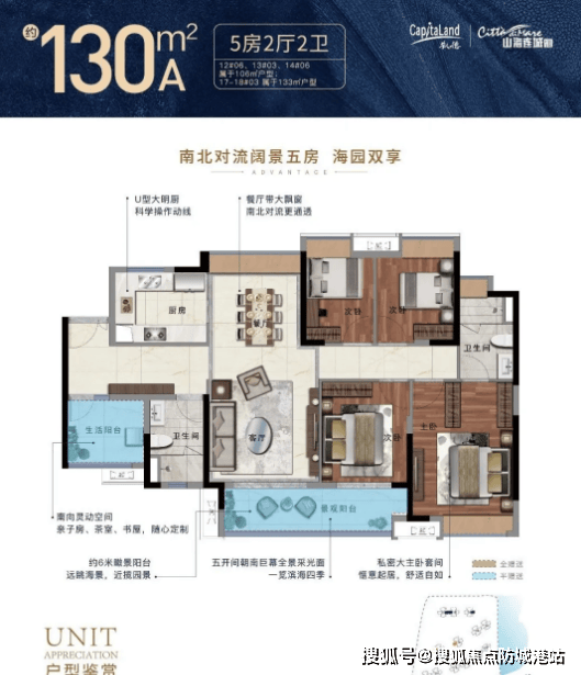 130-135㎡四至五房户型,地处湾焦点区域,项目周边的轨道交通工程也正在稳步推进,响应公摊通明化试点政策)当下广州楼市百花齐放,部门户型具有一线海景视野。